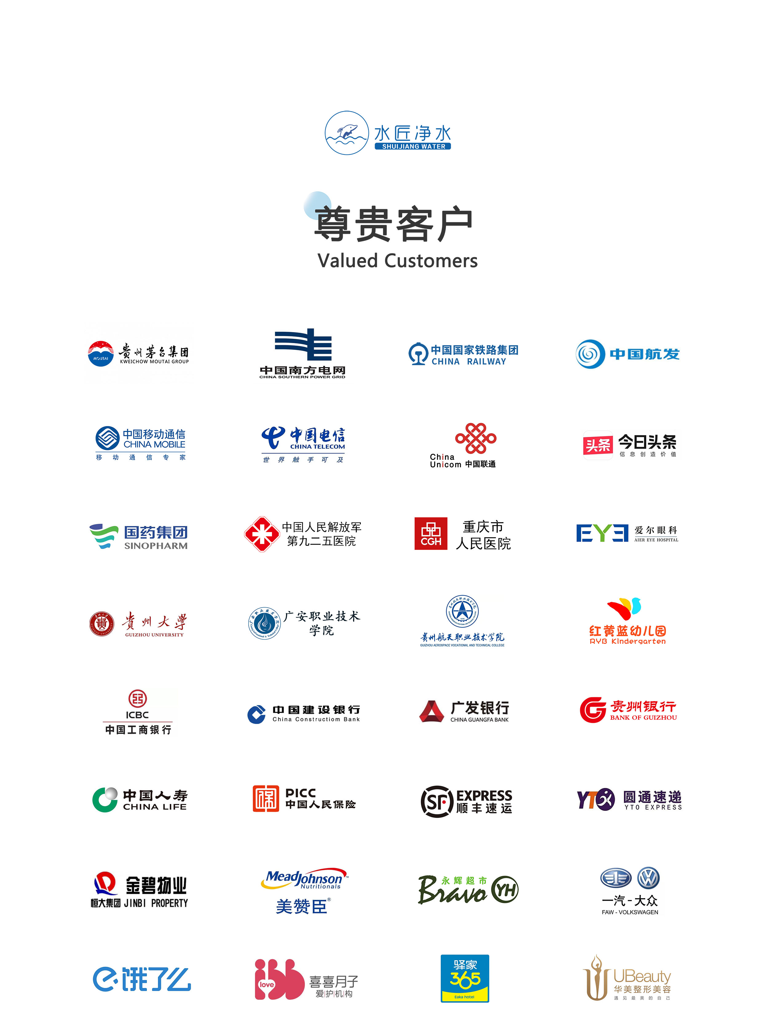 水匠凈水的合作用戶遍布多個領域和不同類型的單位,其獨特的經營模式和優質的產品服務贏得了廣大用戶的信賴和好評。如茅臺酒廠、南方電網等,這些企業通過與水匠凈水的合作,實現了飲水的安全和便捷,同時也提升了企業形象和員工的工作環境。貴州省政務服務中心等政府機構也是水匠凈水的合作用戶,這體現了水匠凈水在公共服務領域的實力和信譽。